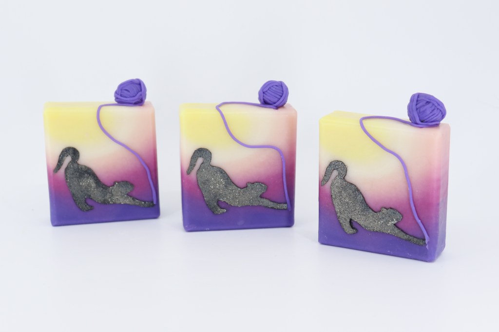 Get ready to purr-fect your pampering routine with our absolutely adorable cat-themed soap! Each bar features the cutest little design, complete with a sweet miniature ball of yarn on top. Crafted with 100% natural soap and cosmetic-grade ingredients, it’s as gentle as a kitten’s touch.