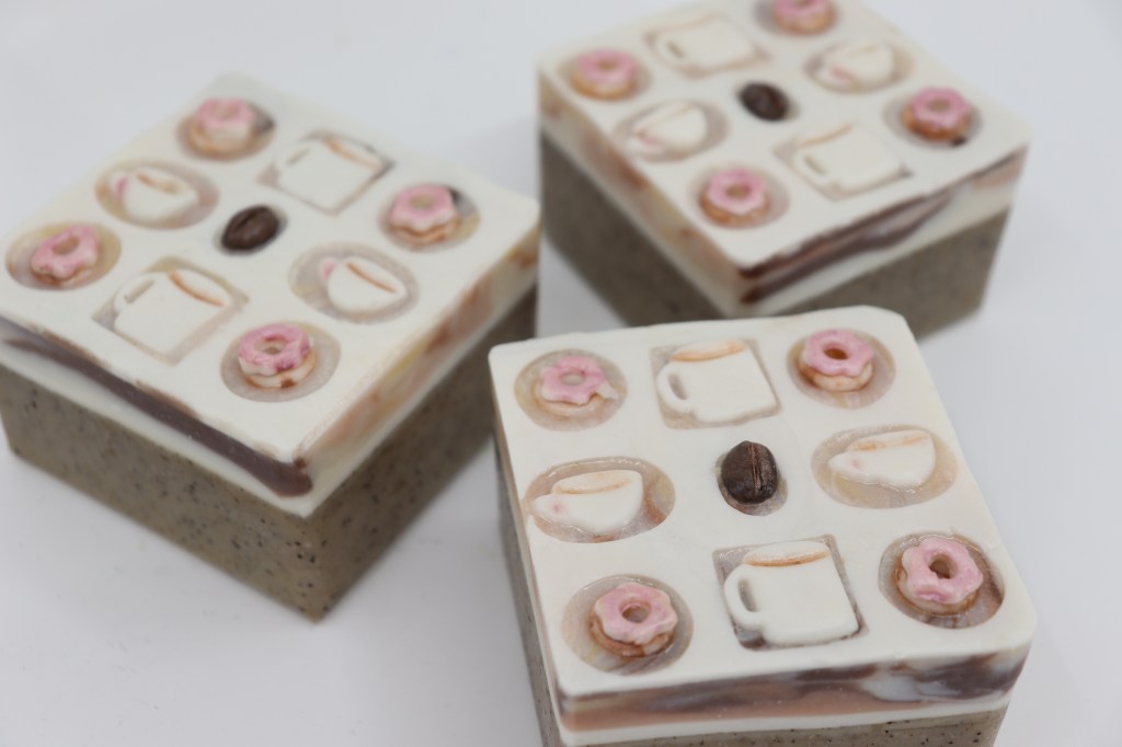 We were so happy to donate this adorable coffee and doughnuts themed soap to a wonderful cause! It’s a little special because it’s made with real, fresh coffee and coffee grounds. We hope it brings a little extra joy!